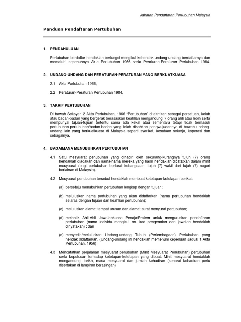 Panduan Untuk Dftar Pertubuhan