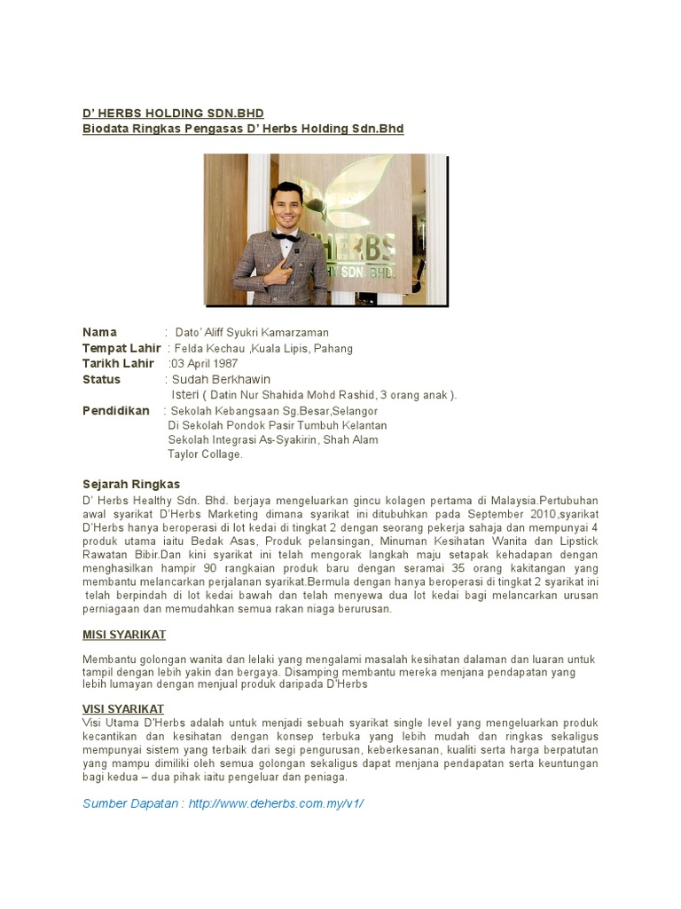 Dherbs Docx A Latar Belakang Syarikat Pertubuhan Awal Syarikat D Herbs Holdings M Dahulu D Herbs Healthy Marketing Ditubuhkan Pada September 2010 Pada Course Hero