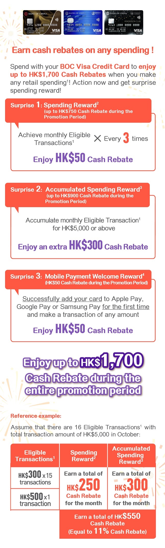 Enjoy Up To Hk 1 700 Cash Rebate For Boc Visa Credit Cardholders Credit Card Bank Of China Hong Kong Limited