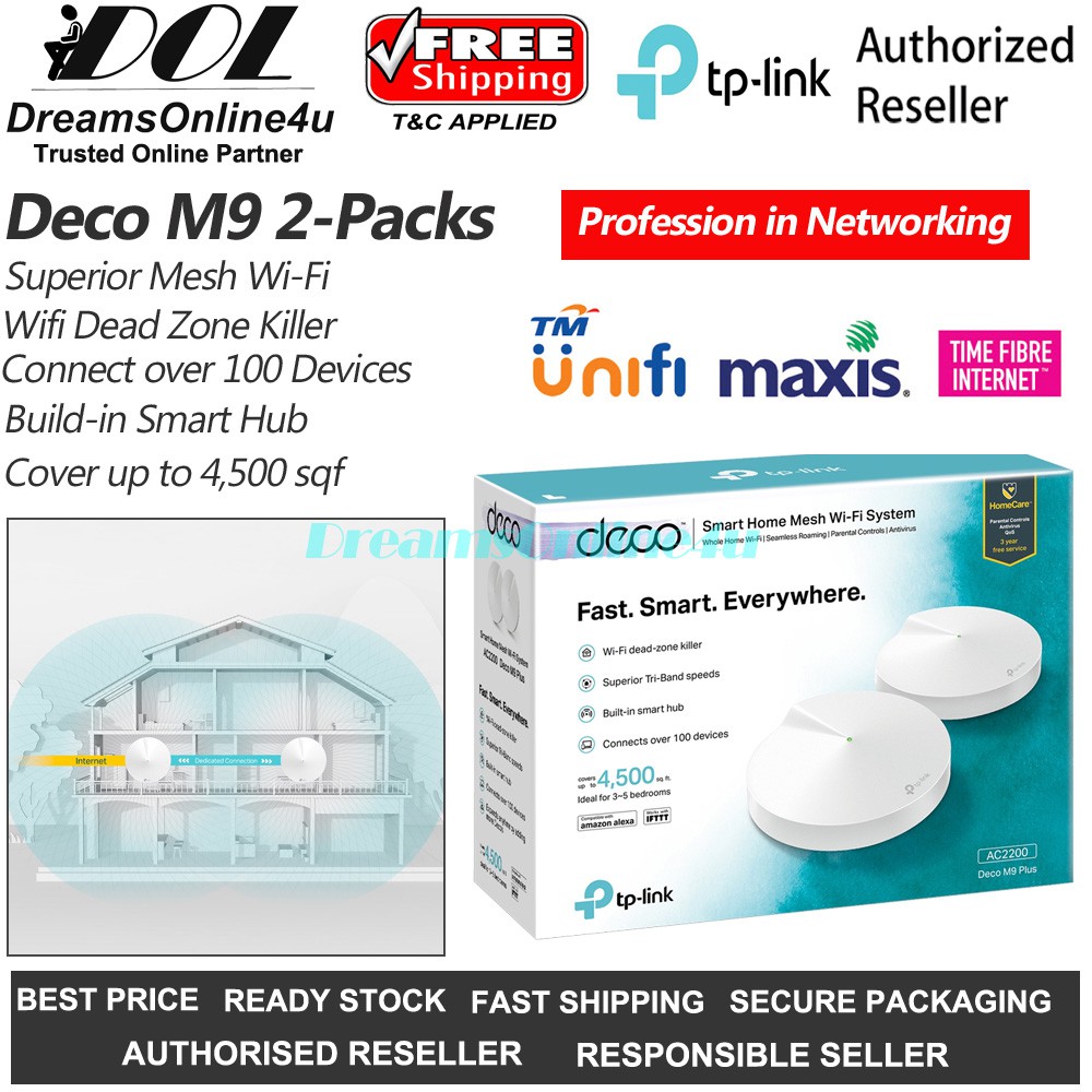 Tp Link Deco M9 Ac2200 Dead Zone Killer Smart Home Mesh Wi Fi System 2 Pack Unifi Hypptv Maxis Time 3 Years Warranty Shopee Singapore