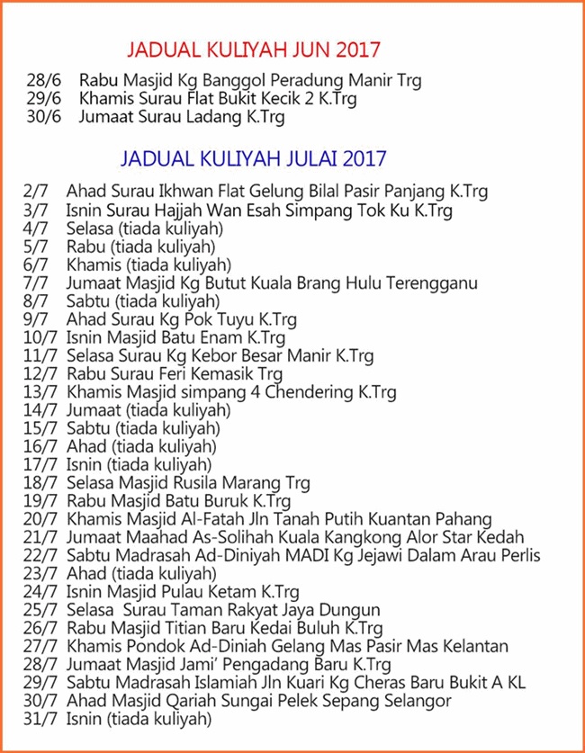 Jadual Kuliah Ustaz Azhar Idrus Uai September 2017