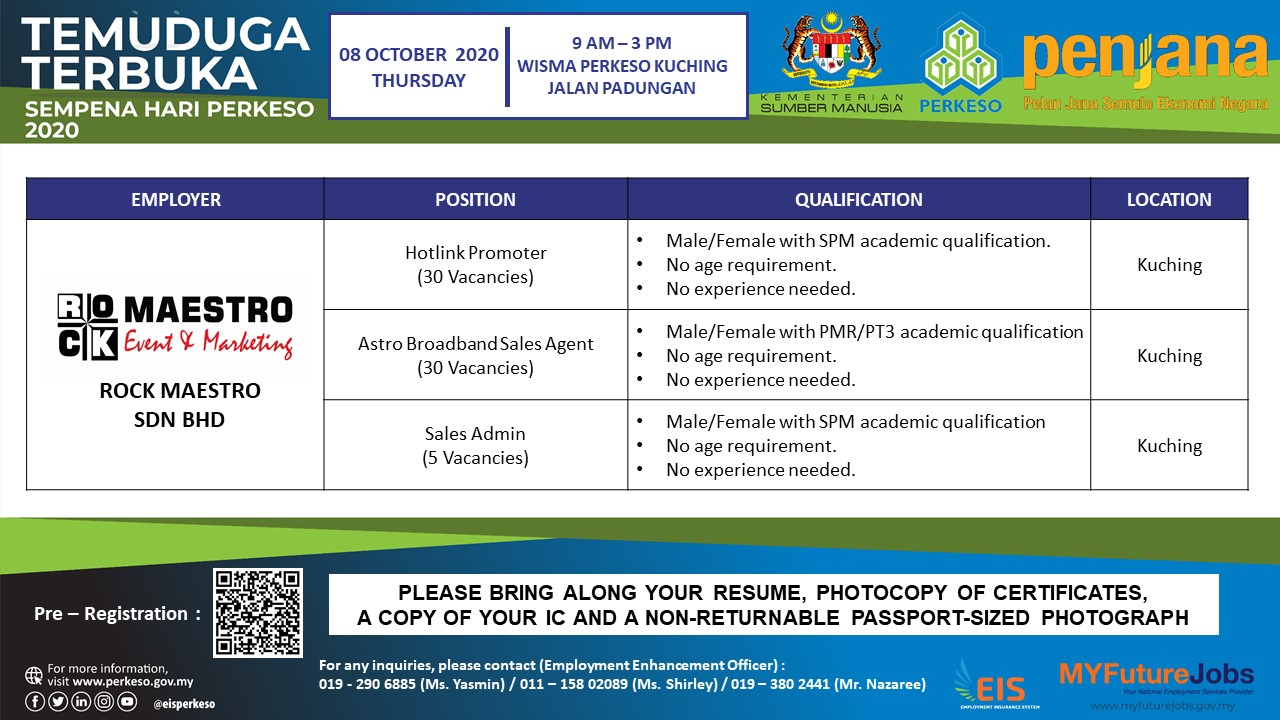 Employment Insurance System On Twitter Temuduga Terbukaanjuran Pejabat Perkeso Sarawak Tarikh 8 Oktober 2020 Khamis Masa 9 00 Pagi 3 00 Petang Tempat Wisma Perkeso Kuching Jalan Padungan Majikan Yang Terlibat 1 Cergas