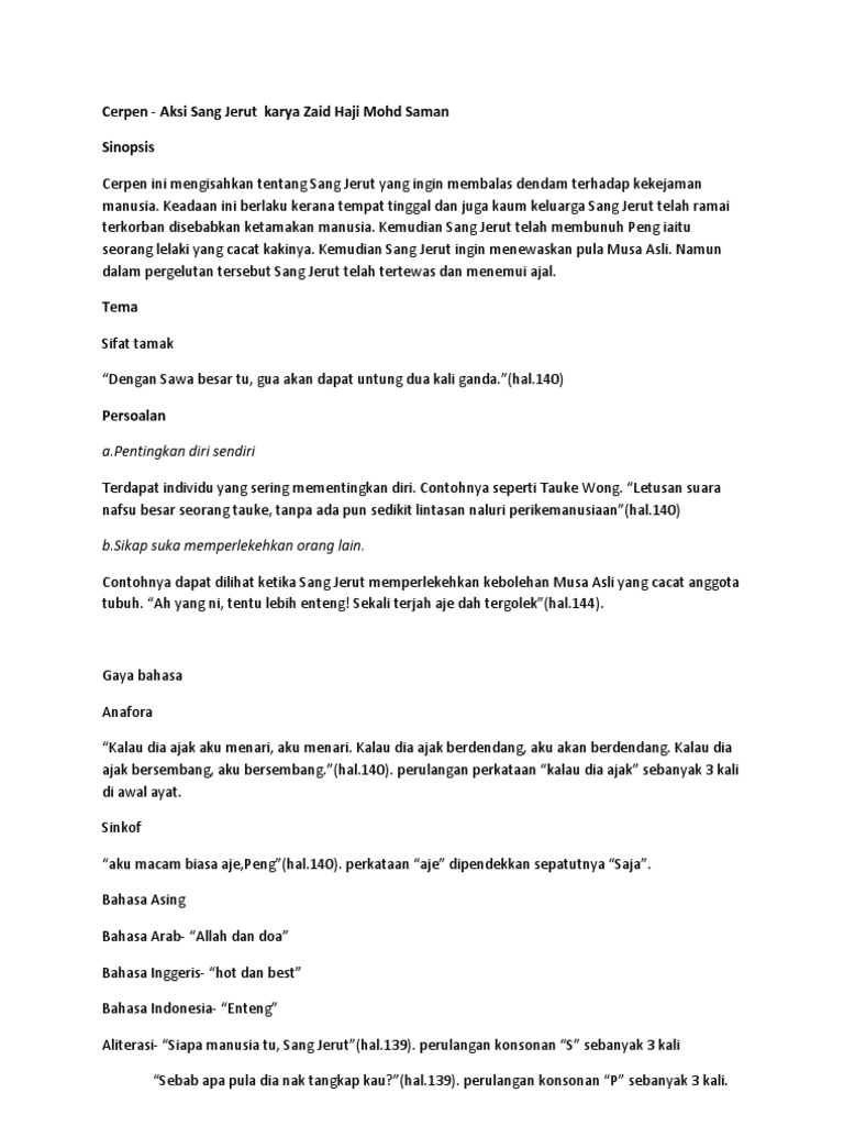 Cerpen Aksi Sang Jerut Karya Zaid Haji Mohd Saman Sinopsis