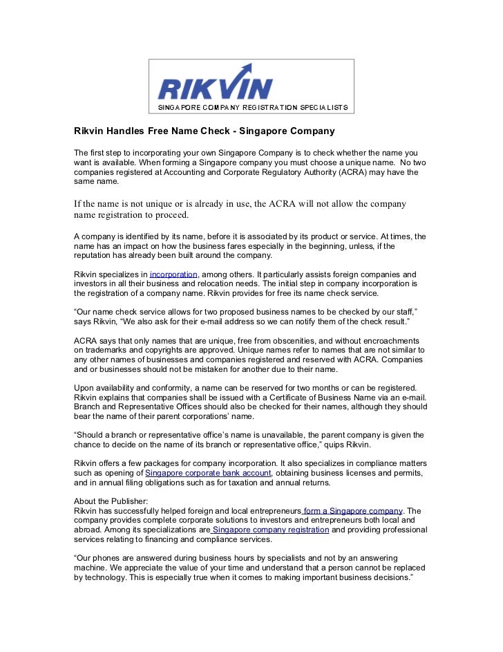 Rikvin Handles Free Name Check Singapore Company