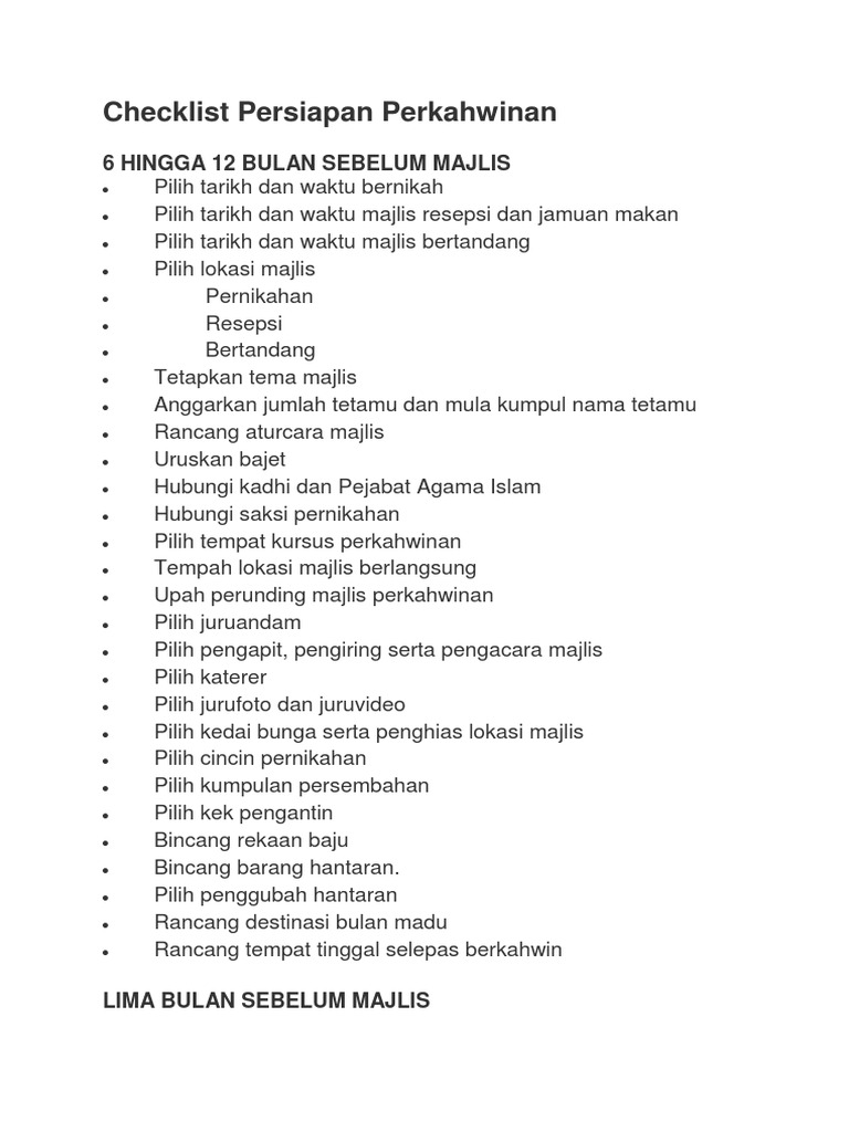 Checklist Persediaan Pernikahan Dan Perkahwinan