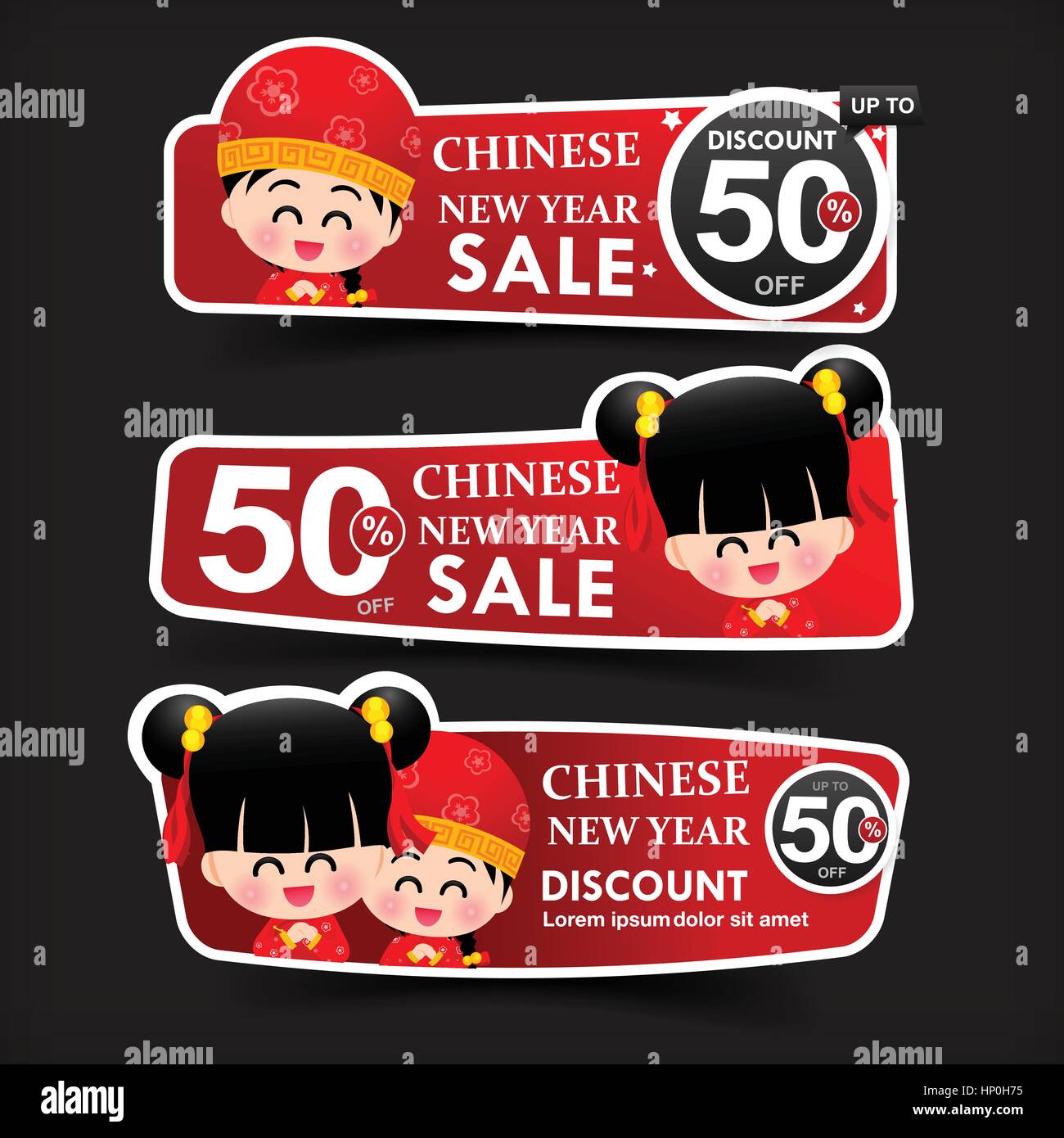 Happy Chinese New Year Boy And Girl Tag Banner For Promotion And Stock Vector Image Art Alamy