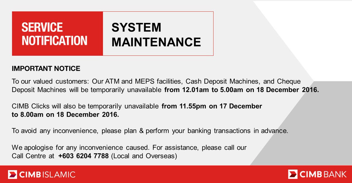 Cimbmalaysia On Twitter Important Notice The Following Services Will Be Temporarily Unavailable