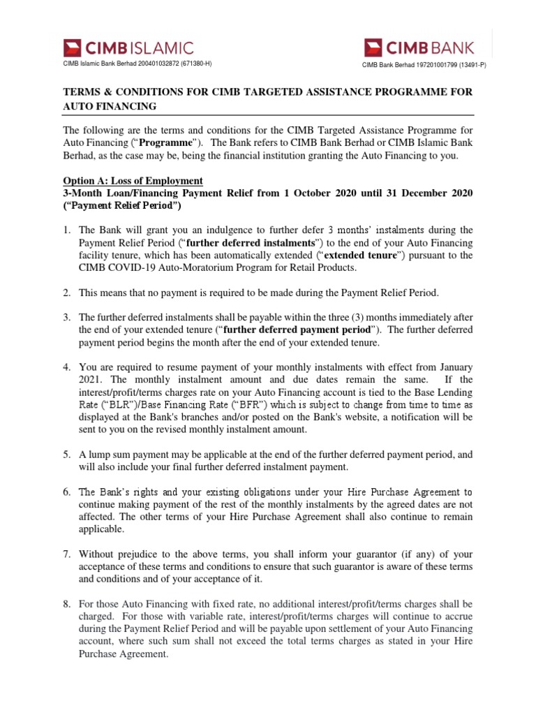 Cimb Targeted Assistance Programme Tnc Auto Eng Pdf Islamic Banking And Finance Banks