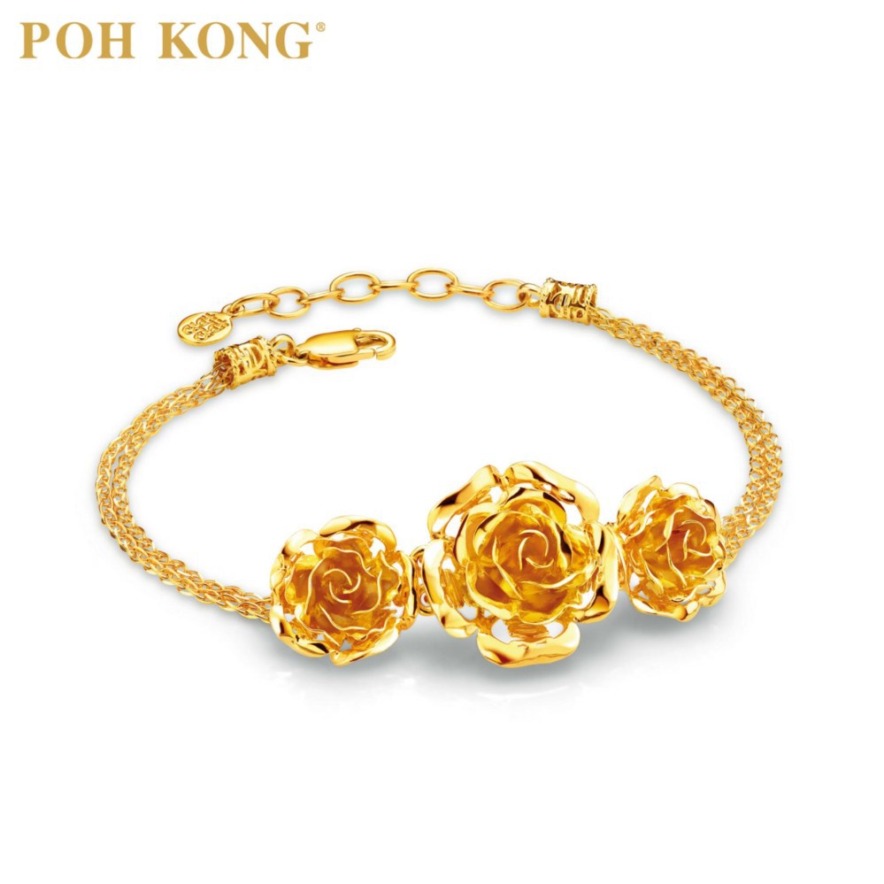 Poh Kong Happy Love 916 22k Yellow Gold Xi Yuan Roses Bracelet Shopee Singapore