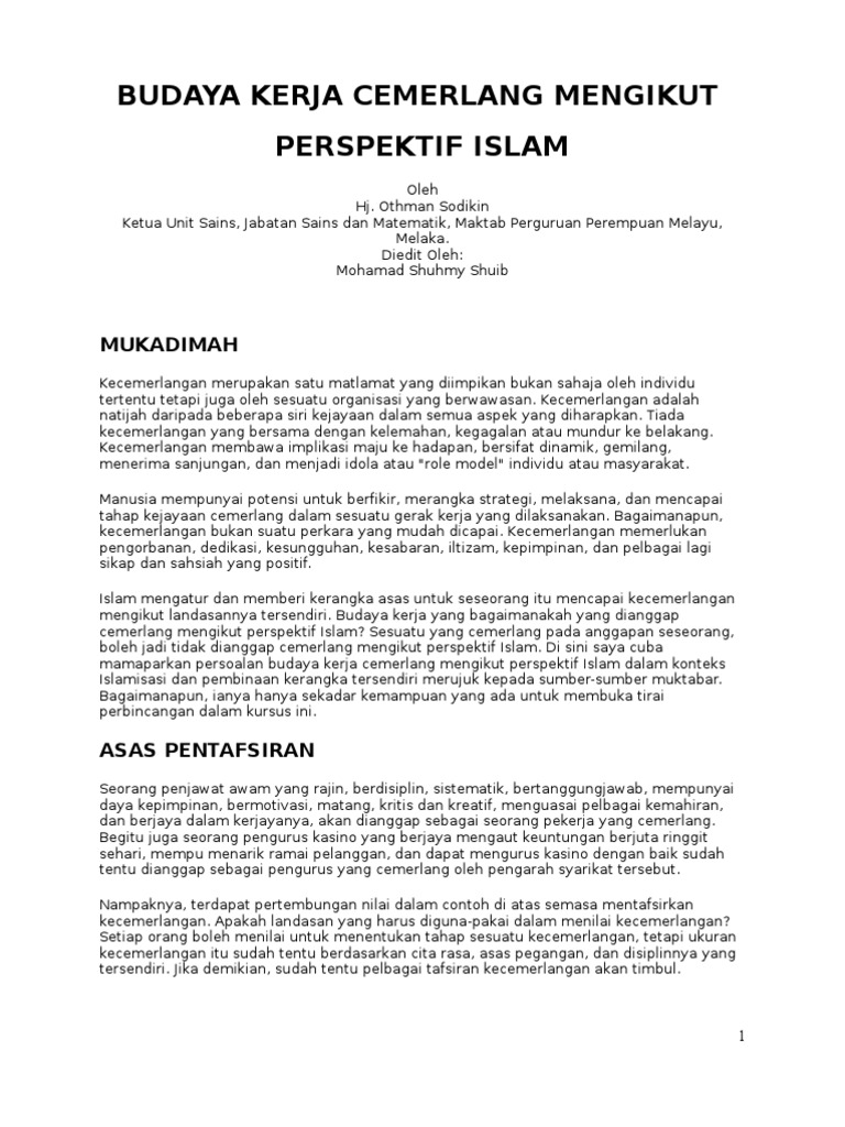Pdf Budaya Kerja Cemerlang Menurut Perspektif Islam Amalan Perkhidmatan Awam Malaysia Excellent Work Culture From Islamic Perspective Malaysian Public Services Practice Akmal Hakim Chik Academia Edu