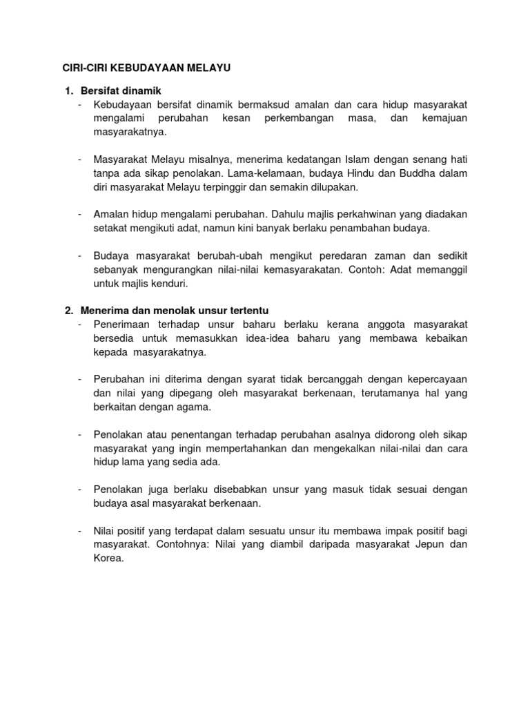Ciri Ciri Kebudyaan Melayu