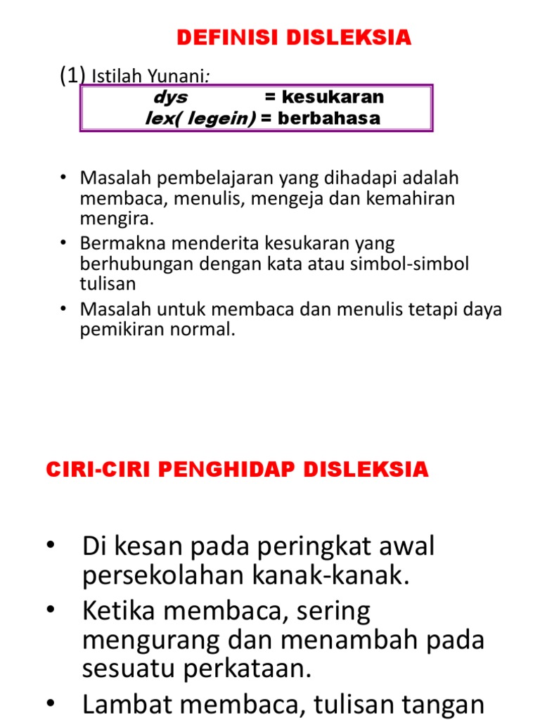 Ciri Murid Disleksia Cikgu Hijau Ciri