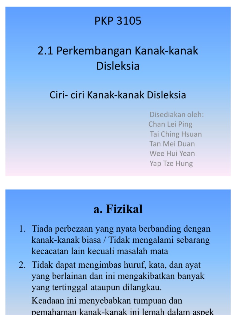 2 1 Ciri2 Kanak Kanak Disleksia