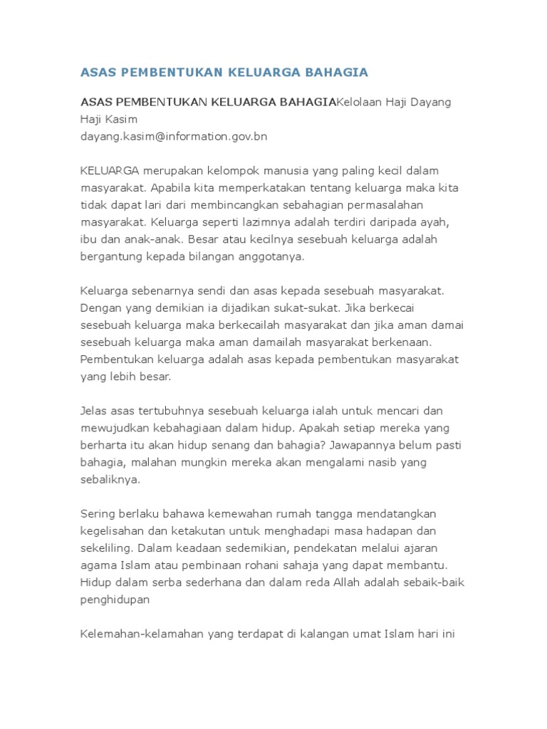 Karangan Ciri Ciri Sebuah Keluarga Bahagia