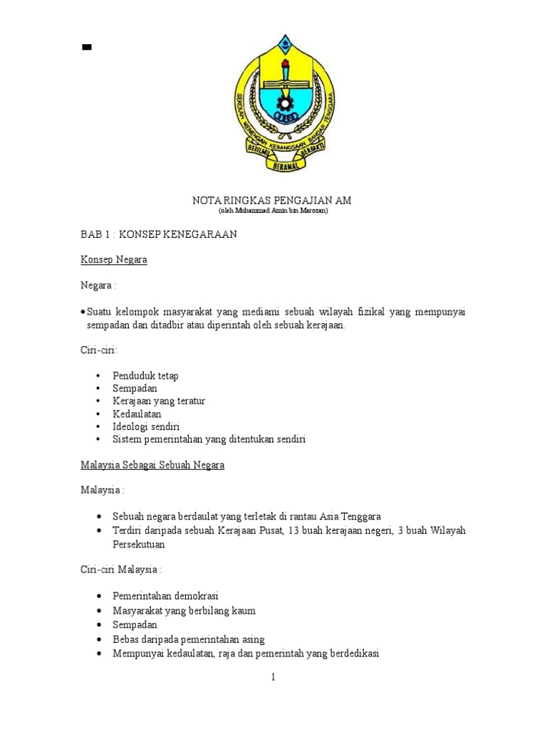 Nota Ringkas Pengajian Am Penggal 1 Docx Document