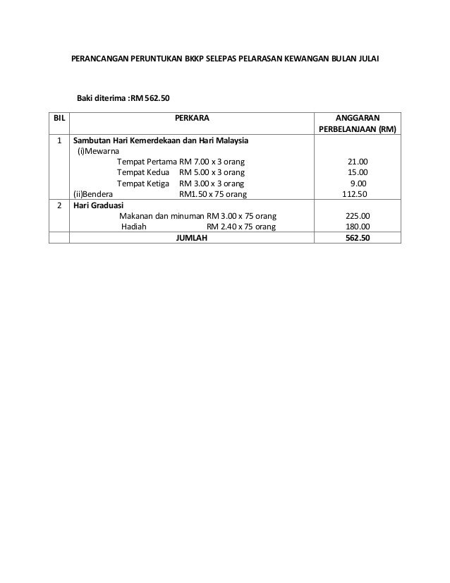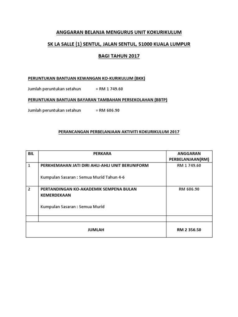 Contoh Anggaran Belanja Mengurus Kokurikulum
