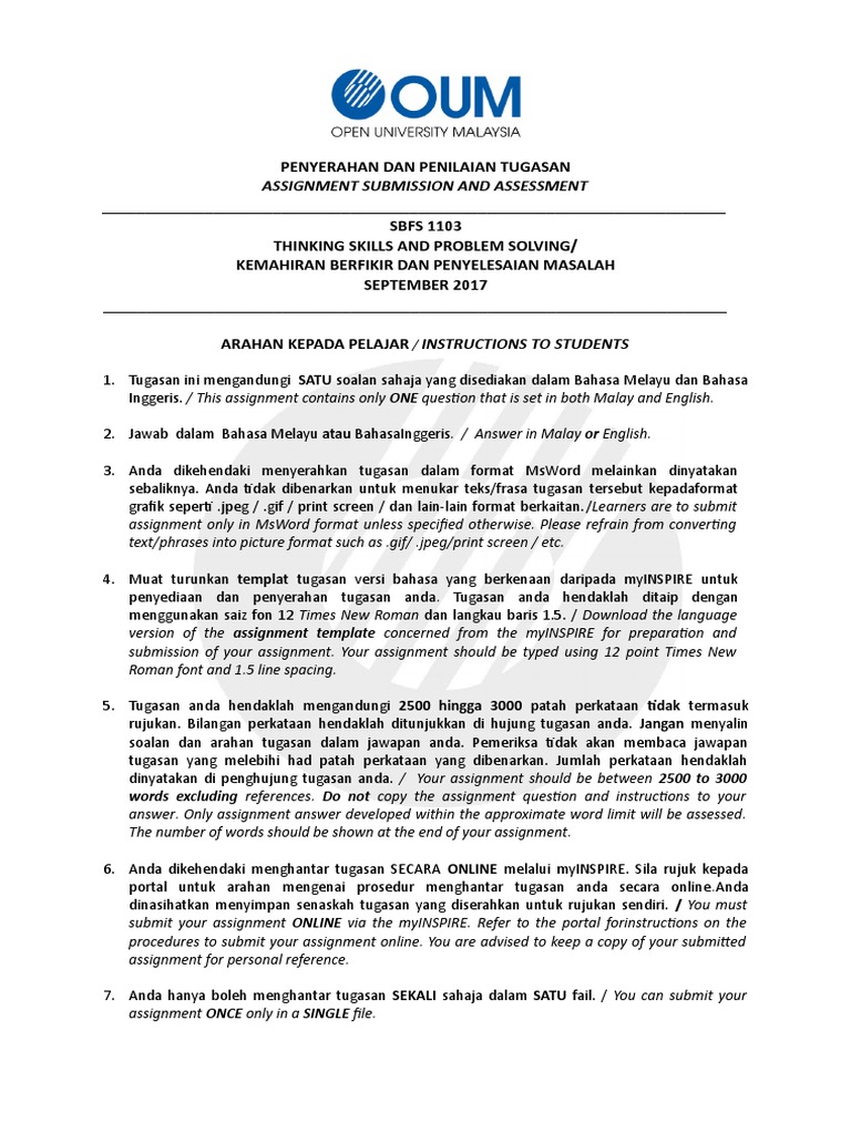 Contoh Assignment Kemahiran Berfikir Dan Penyelesaian Masalah Oum