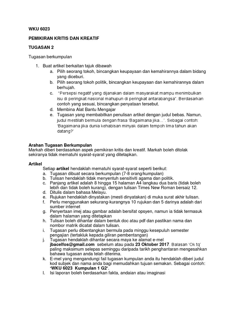 Contoh Assignment Pemikiran Kritis Dan Kreatif