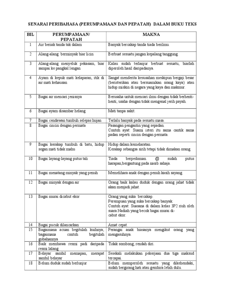 345708308 Senarai Peribahasa Docx Senarai Peribahasa Perumpamaan Dan Pepatah Yang Terdapat Di Dalam Buku Teks Tingkatan 1 3 Bil 1 Perumpamaan Pepatah Course Hero
