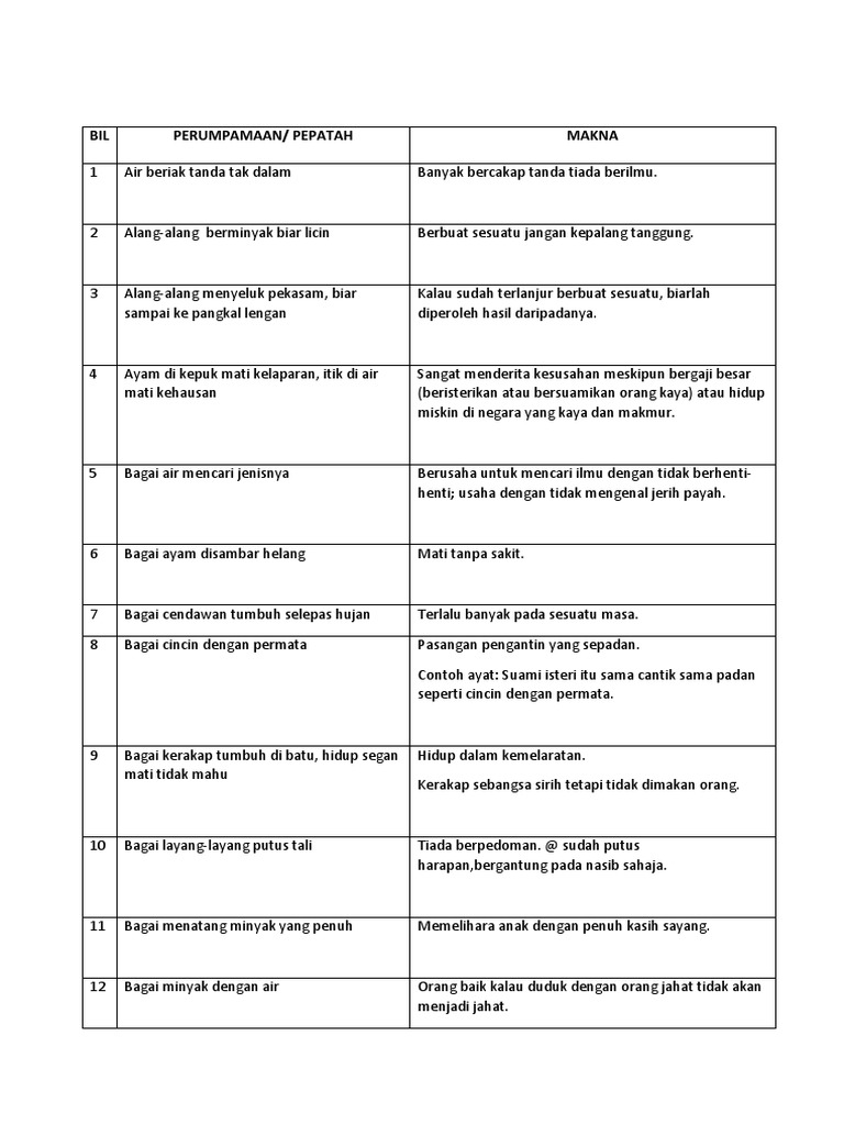 Senarai Peribahasa Perumpamaan Dan Pepatah Bil Perumpamaan Pepatah Makna