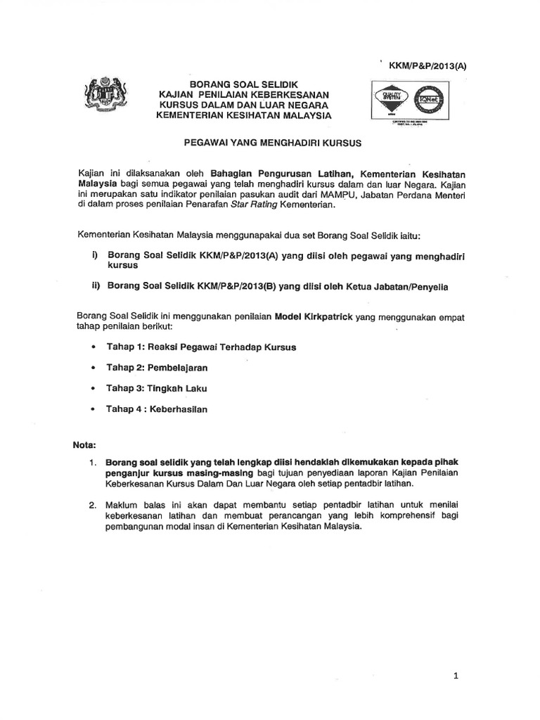 Borang Soal Selidik Kajian Penilaian Keberkesanan Kursus Dalam Pdf Document
