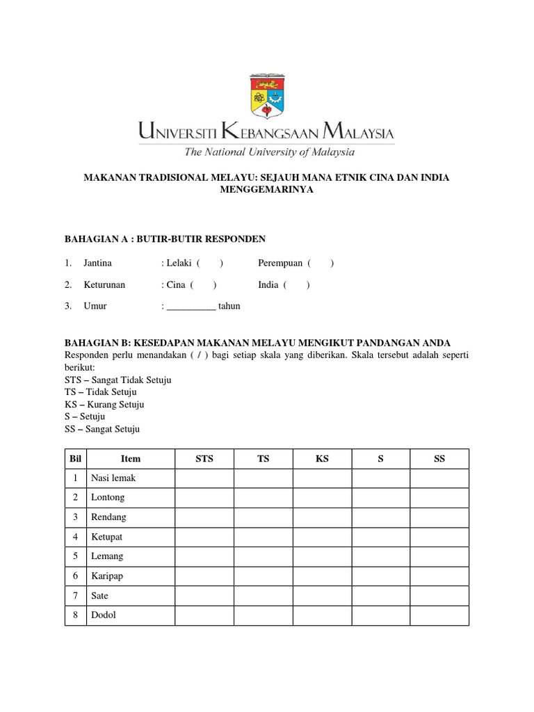Borang Soal Selidik Makanan Tradisional Melayu
