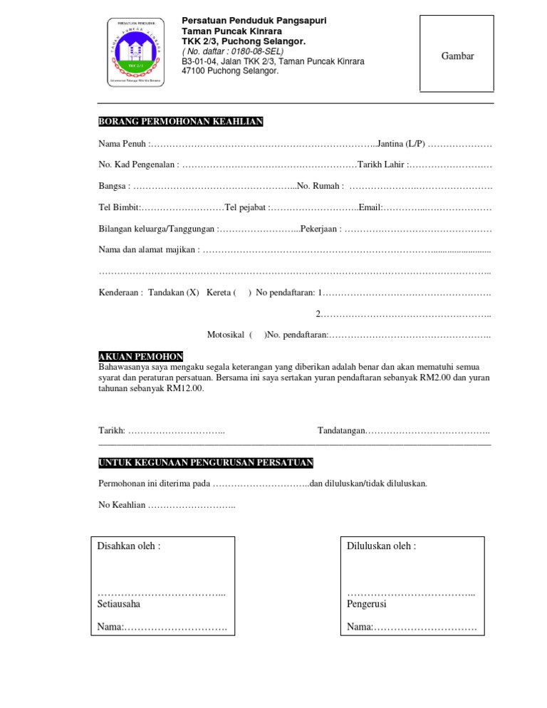 Borang Keahlian Persatuan Penduduk Puncak Kiara