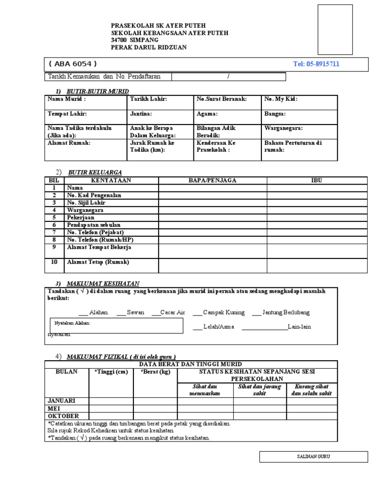 Moshims Contoh Borang Maklumat Murid Prasekolah