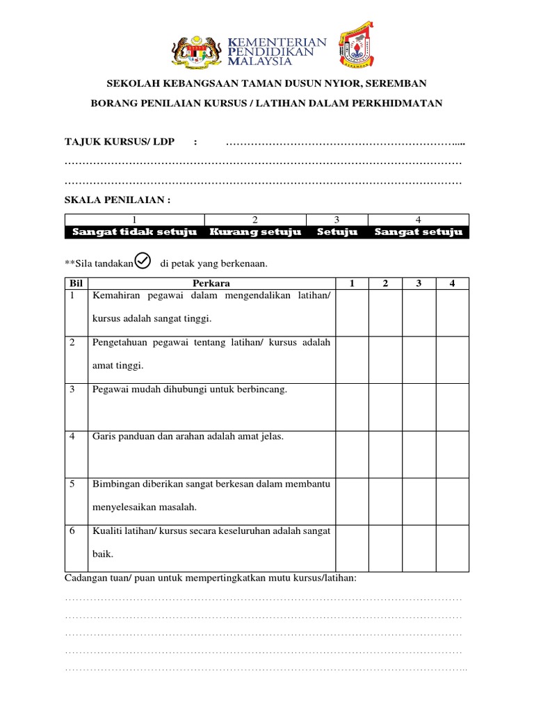 Borang Penilaian Kursus Pdf Google Drive