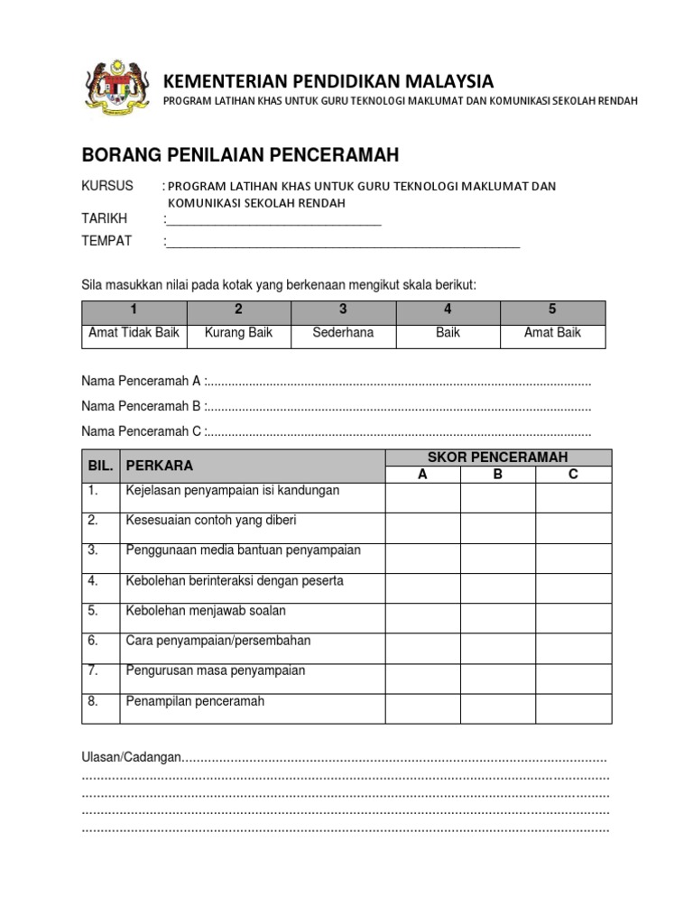 Contoh Borang Penilaian Penceramah