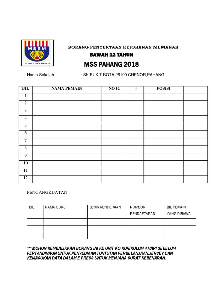 Borang Pendaftaran Perlawanan Kokurikulum Smk Bukit Garam