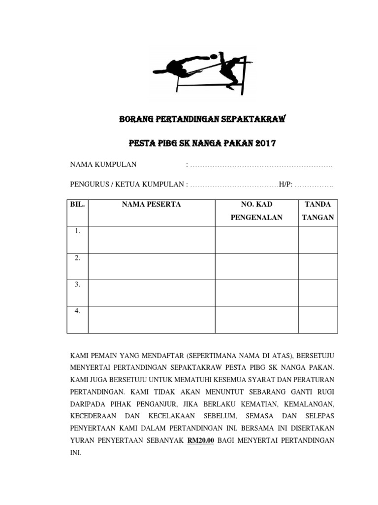 Contoh Borang Penyertaan Pertandingan Sepak Takraw