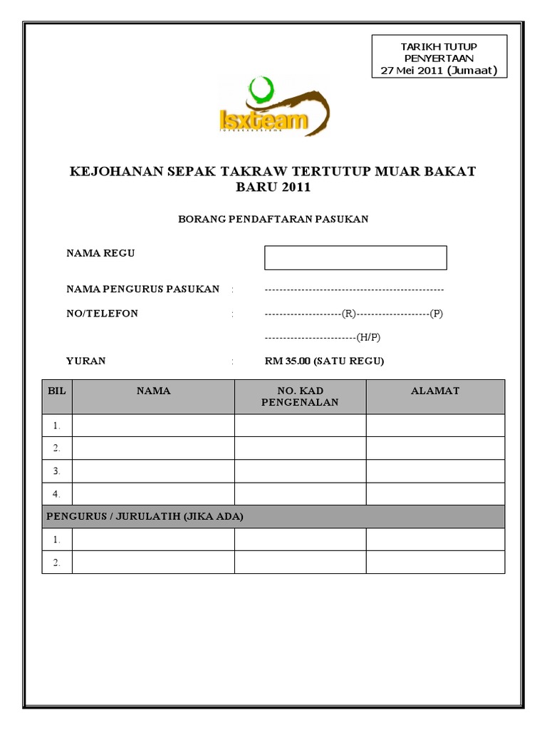 Borang Pertandingan Sepak Takraw Anjuran Ajk