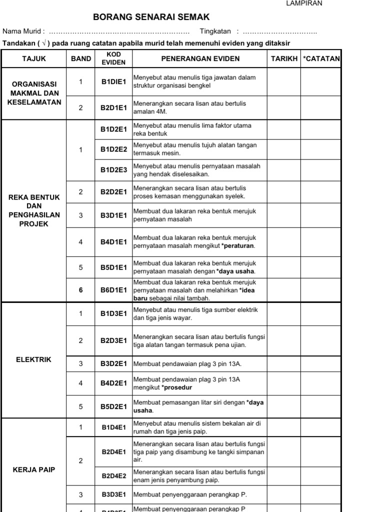 3 2 Senarai Semak Bengkel Kemahiran Hidup