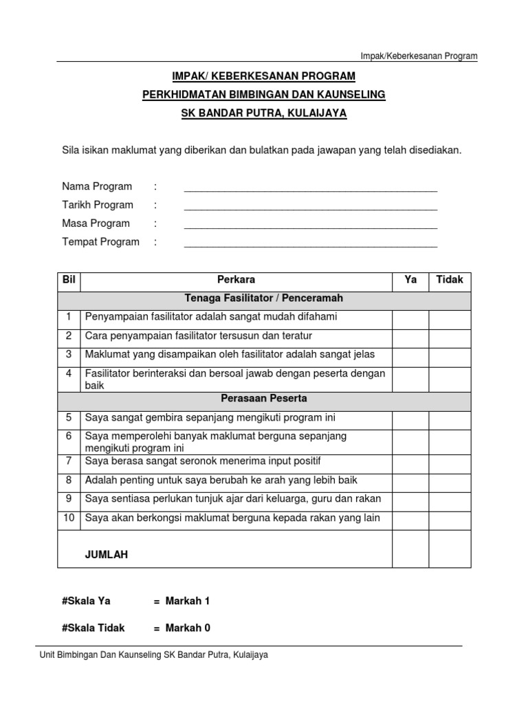 Contoh Borang Soal Selidik Keberkesanan Program