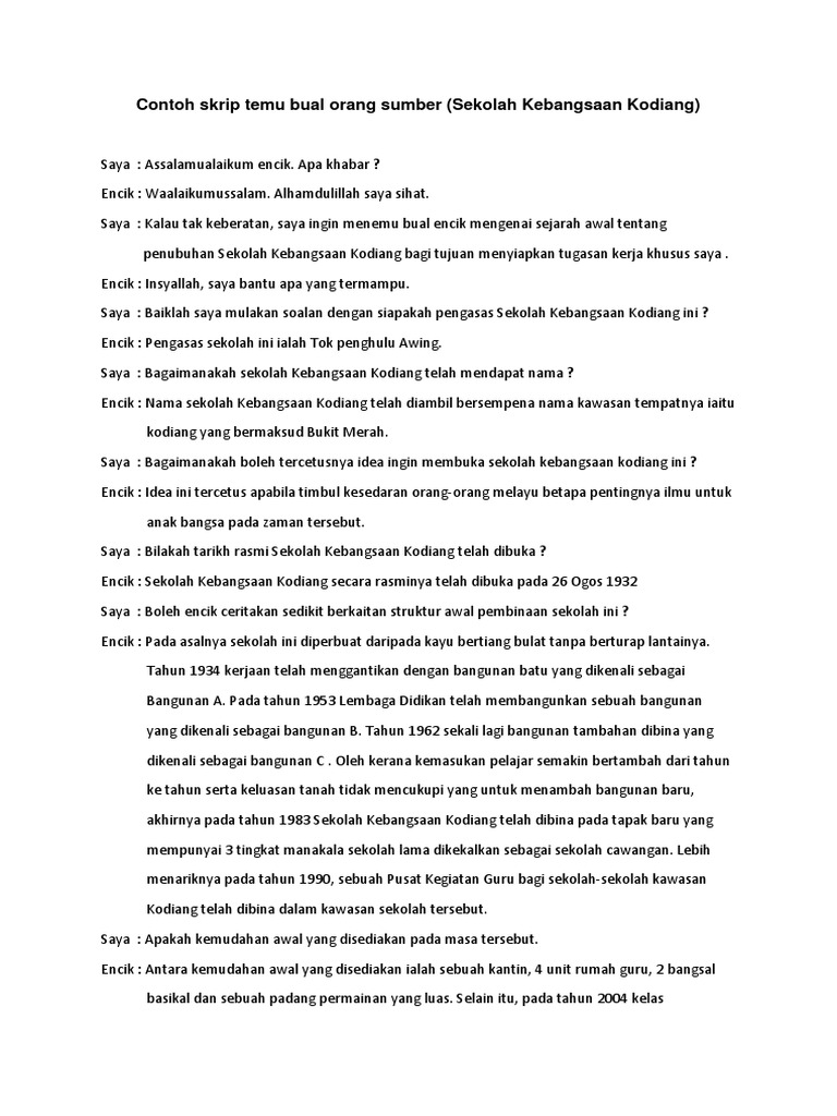 Doc Contoh Skrip Temu Bual Orang Sumber Sekolah Kebangsaan Kodiang Ku Mirah Academia Edu