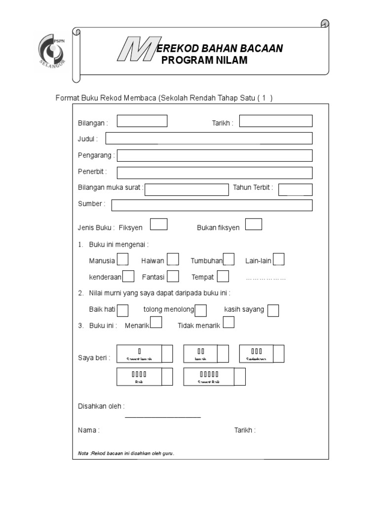 Format Terkini Buku Rekod Bacaan Nilam Sekolah Rendah Sekolah Menengah Shopee Malaysia