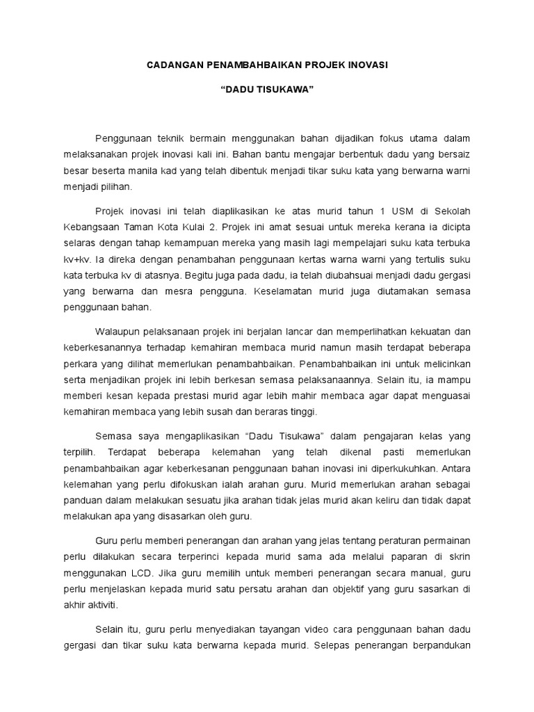 Cadangan Penambahbaikan Projek Inovasi