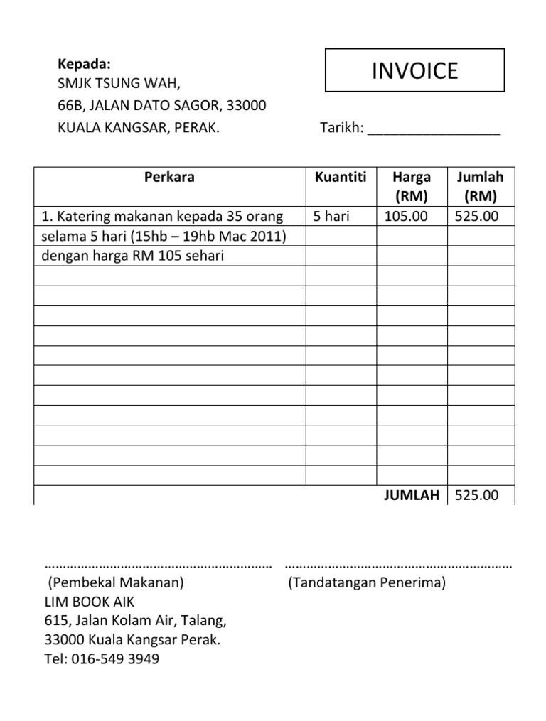 Contoh Invoice Tuntutan Bayaran Jawat Koso