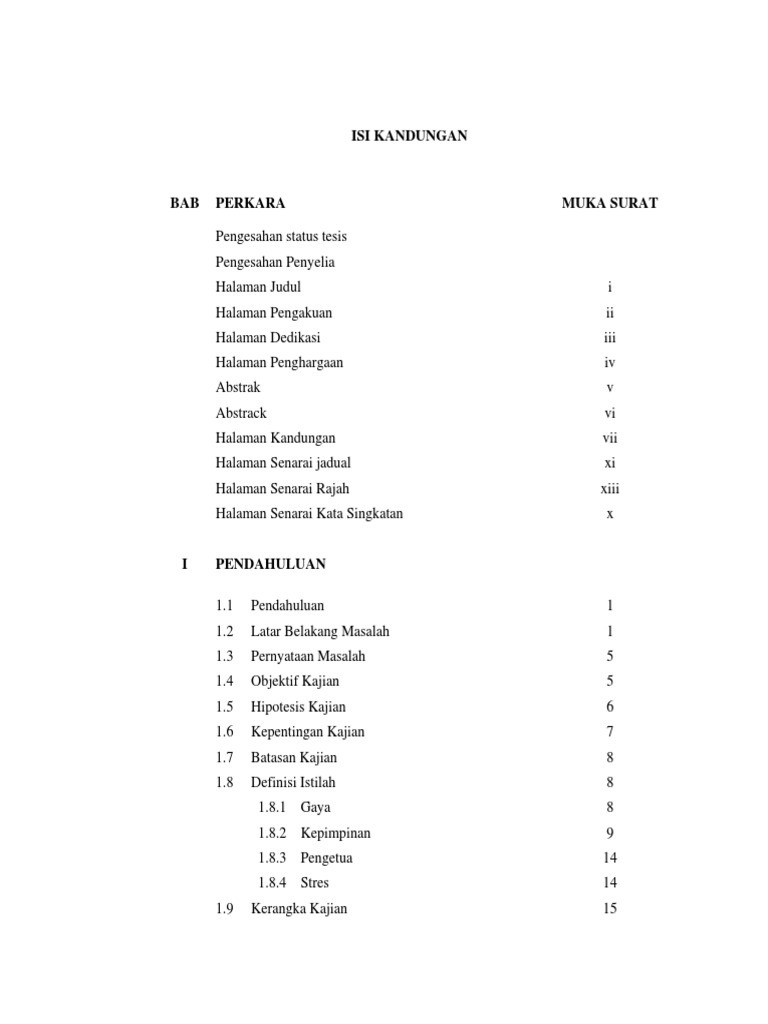 Contoh Isi Kandungan Tesis Contoh Soal Dan Contoh Pidato Lengkap