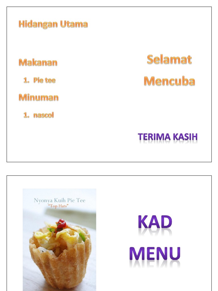 Moshims Design Contoh Kad Menu Makanan Kreatif