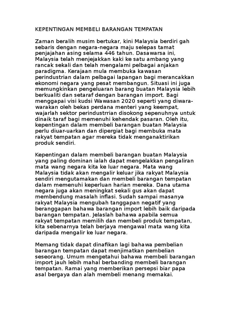Contoh Karangan Beli Barangan Buatan Malaysia Tahun 5