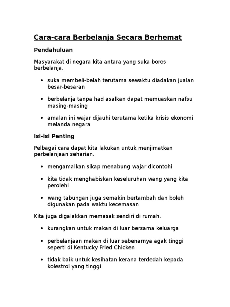 Contoh Karangan Langkah Langkah Untuk Menjimatkan Perbelanjaan