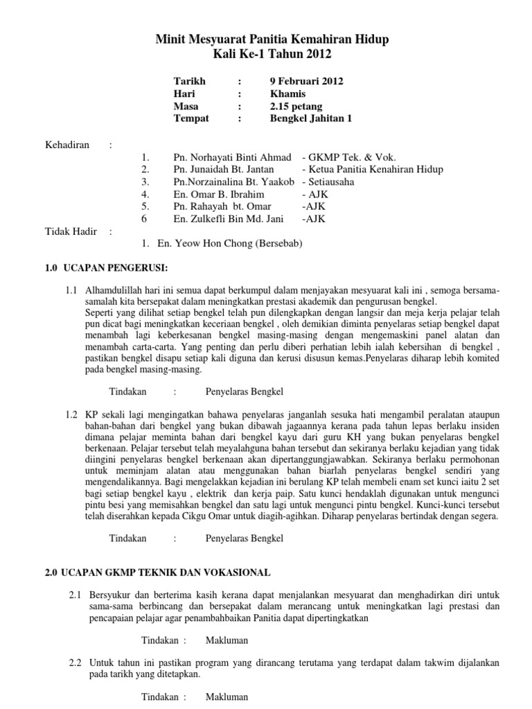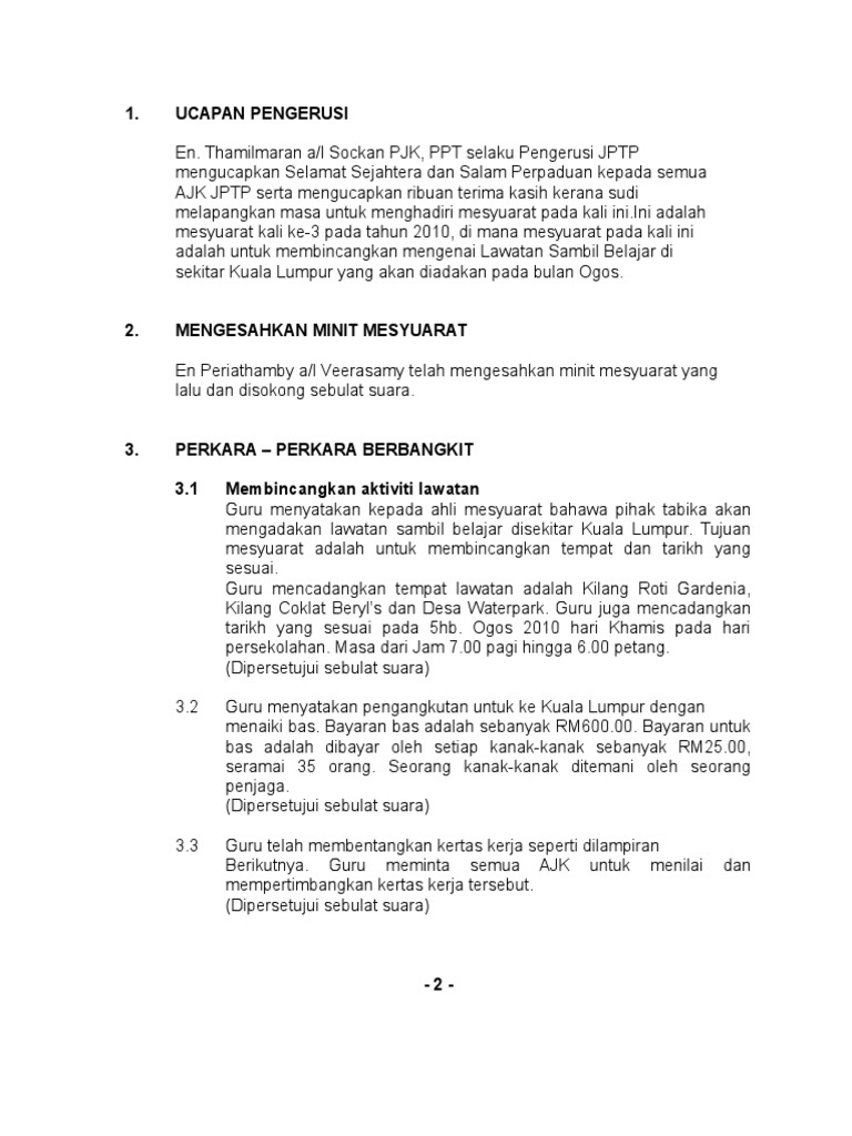 Doc Contoh Minit Mesyuarat Ajk Persatuan Bahasa Melayu Etiesha Rais Academia Edu