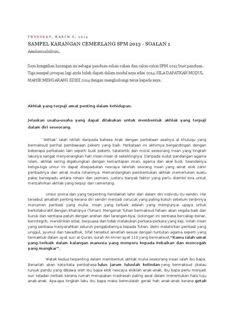 Contoh Karangan Spm Peranan Keluarga Dalam Pembentukan Sahsiah Anak