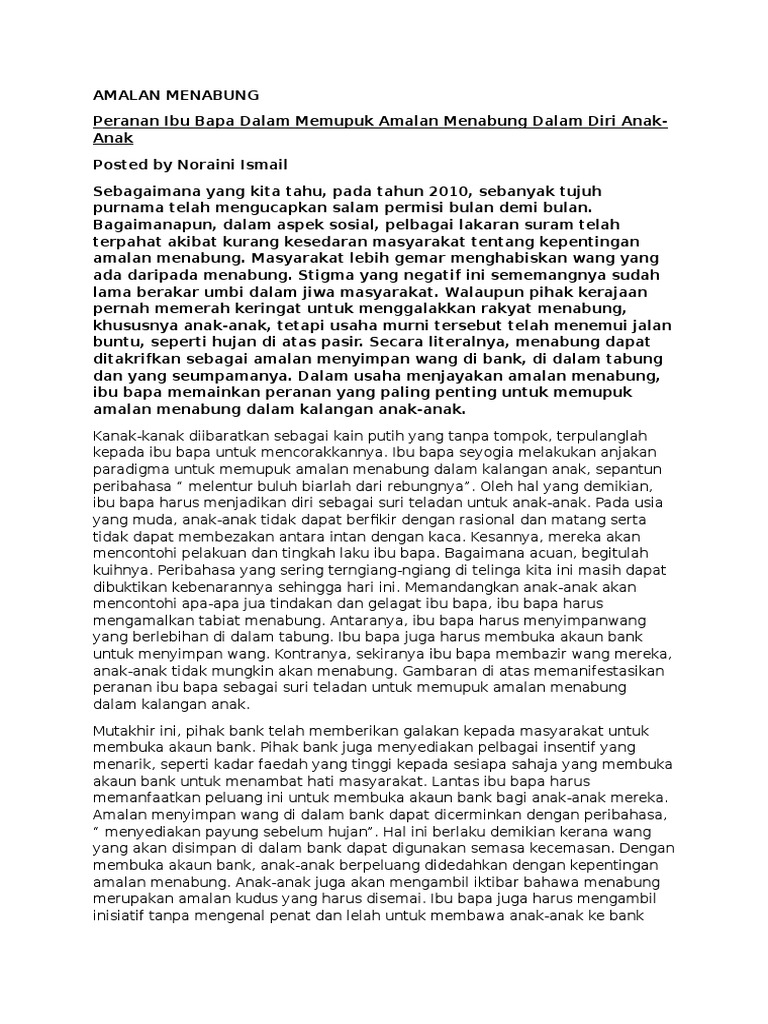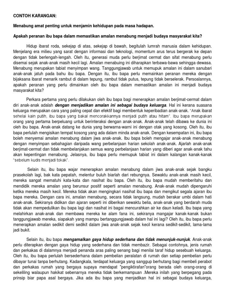 Karangan Peranan Ibu Bapa Memupuk Amalan Menabung Karangan Net