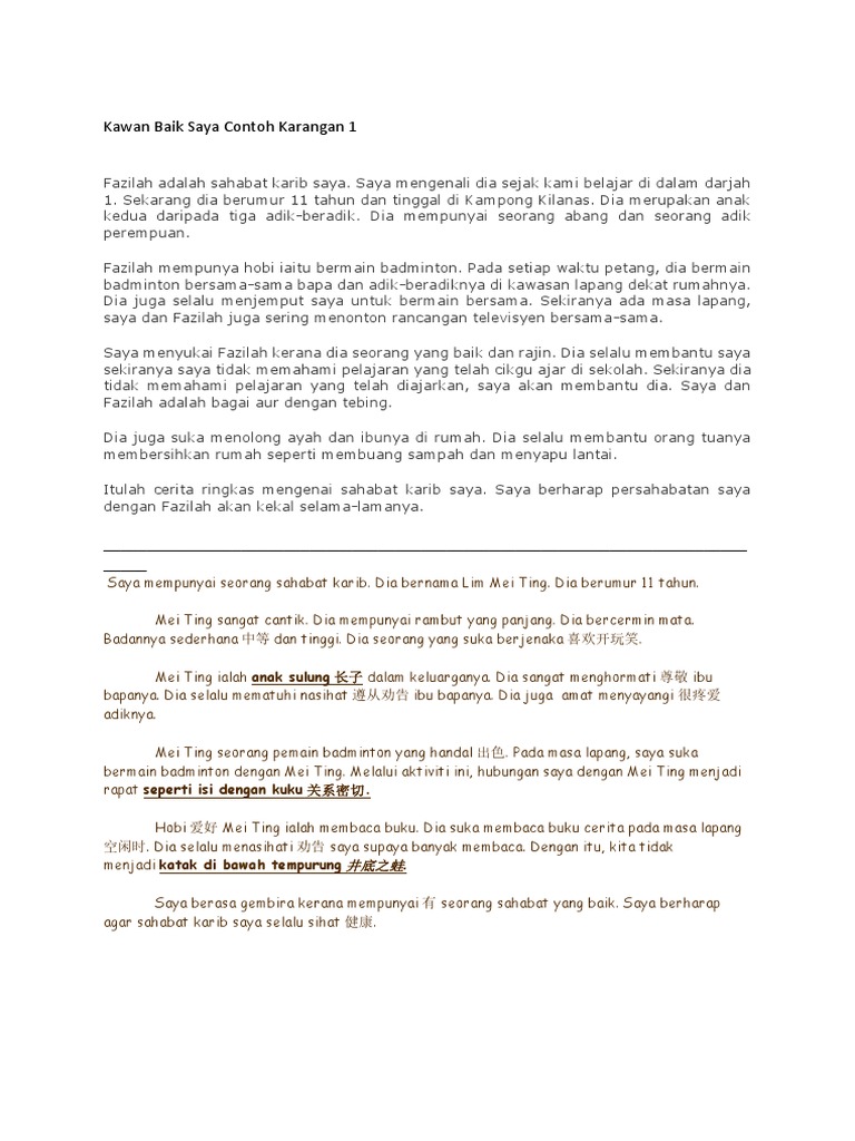 Kawan Baik Saya Contoh Karangan 1 Docx
