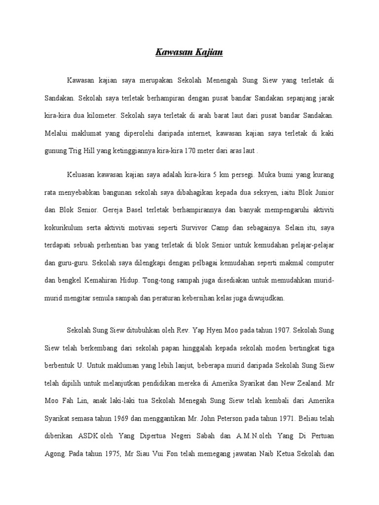 Contoh Latar Belakang Kawasan Kajian Pt3 Geografi