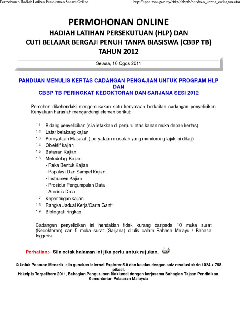 Panduan Menulis Kertas Cadangan Pengajian Untuk Program Hlp Dan