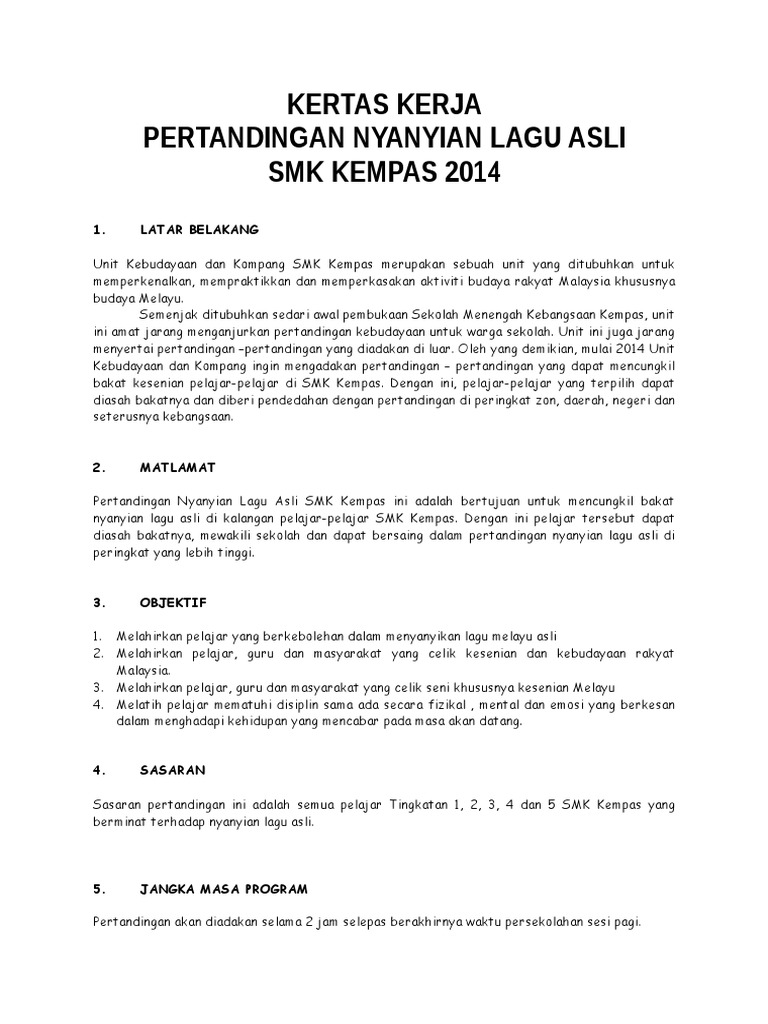 Kertas Kerja Pertandingan Nyanyian Lagu Asli